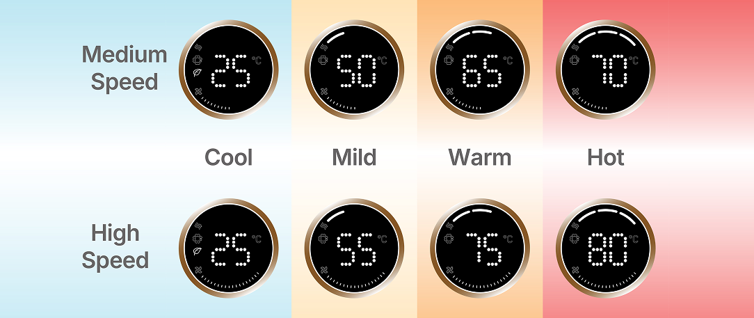 Dirancang untuk kemudahan dan ketepatan, panel layar LED yang intuitif memudahkan Anda melihat pengaturan dan suhu yang dipilih secara sekilas.