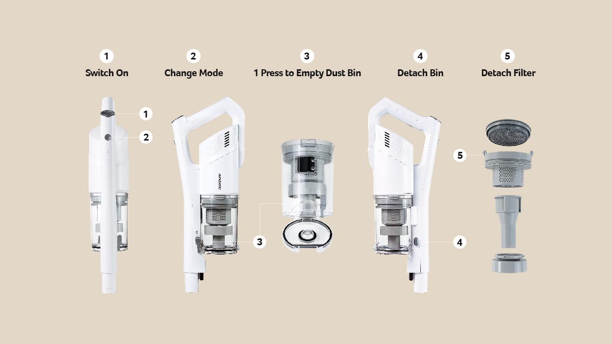 Baik untuk membersihkan debu ringan, pembersihan mendalam, maupun merawat bulu hewan peliharaan, Anda dapat beralih antar mode dengan mudah sesuai kebutuhan.