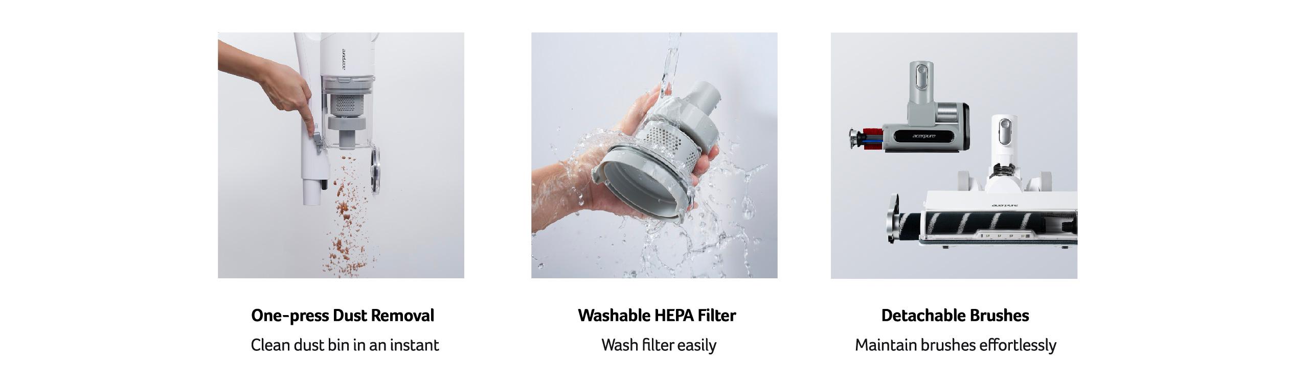 Dengan komponen dan filter yang mudah dibersihkan, menjaga performa vacuum tetap optimal menjadi sangat praktis, sehingga selalu andal untuk menemani rutinitas kebersihan Anda.