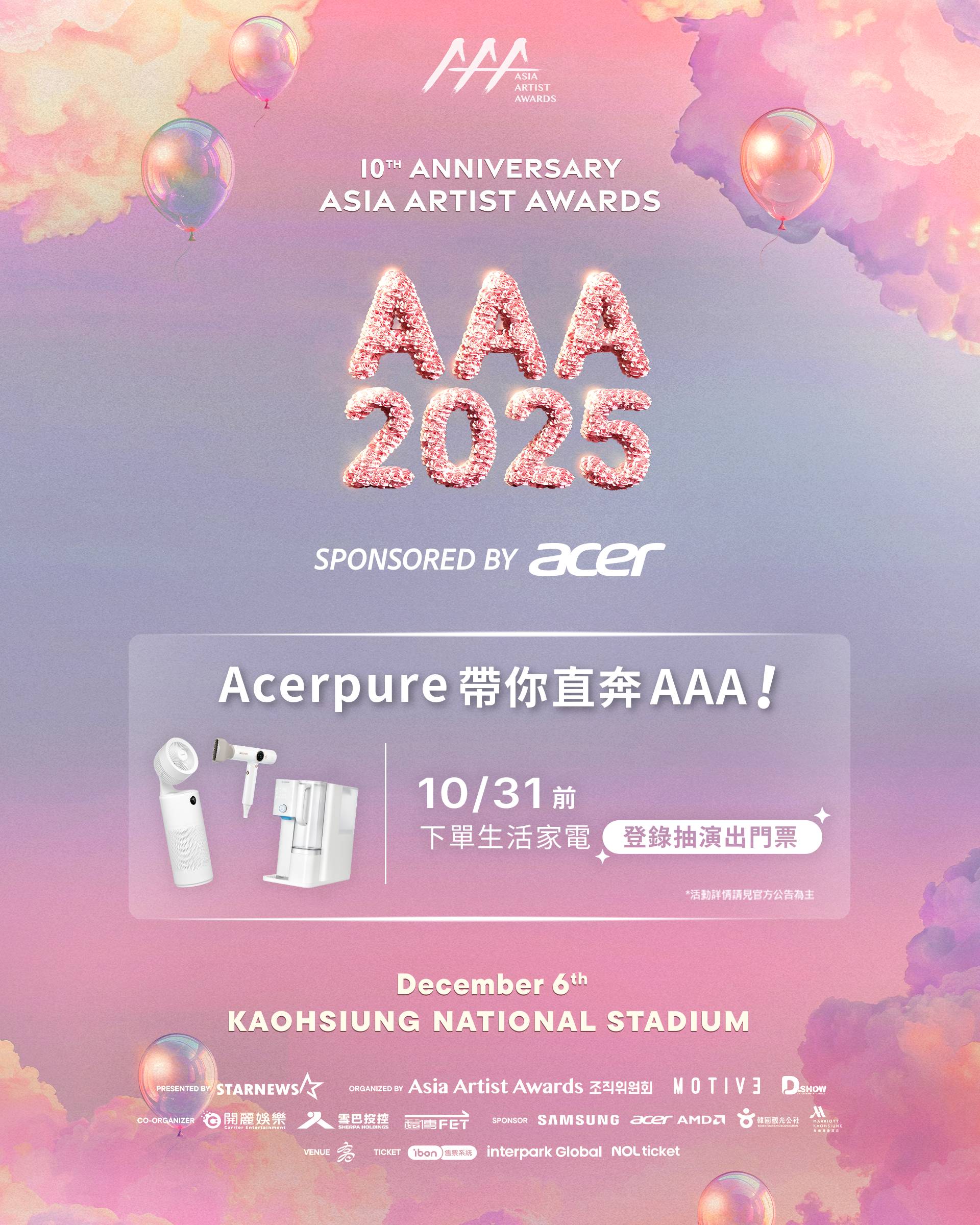 全通路下單千元(含)以上主機,至官網https://acerpure.com/tw/events完成活動登錄,即有機會抽2025 AAA頒獎典禮以及ACON演唱會門票。