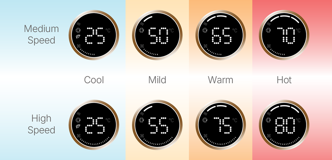Dirancang untuk kemudahan dan ketepatan, panel layar LED yang intuitif memudahkan Anda melihat pengaturan dan suhu yang dipilih secara sekilas.