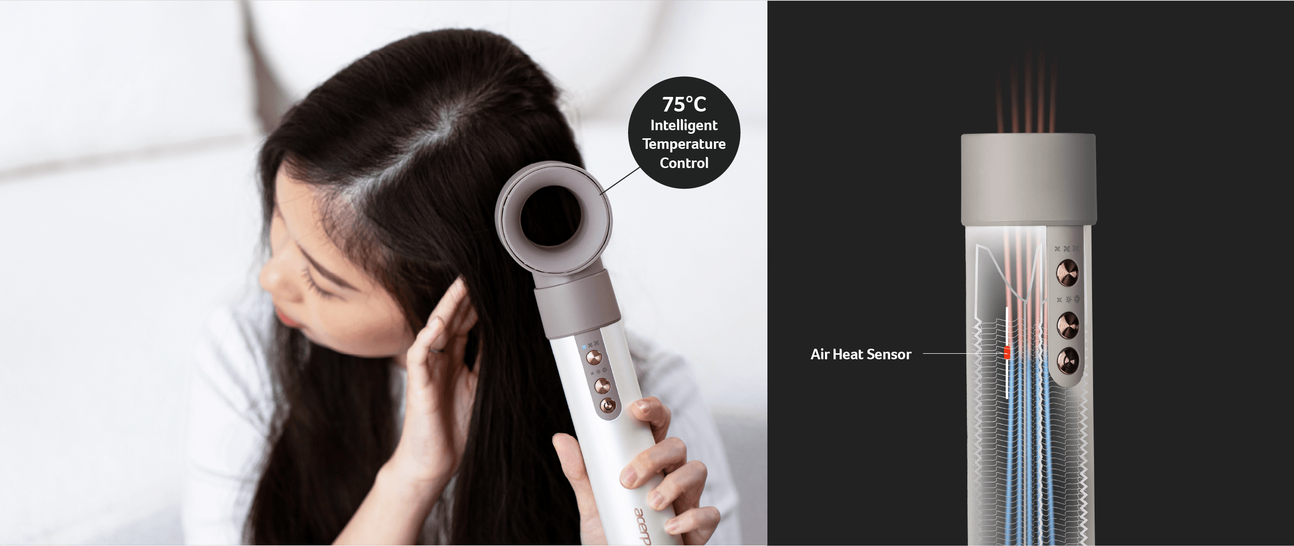 Intelligent Hair Care AI Mode automatically alternates between hot and cool air to effortlessly protect your hair and scalp from heat damage.