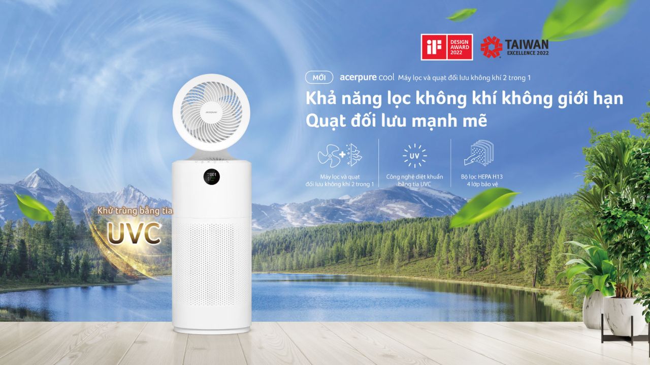 - Acerpure Cool C2-UVC có 10 cấp độ quạt, ở cấp độ lớn nhất, quạt đối lưu không khí có thể đưa luồng gió đi xa đến 24m, giúp không gian trong phòng không khí sạch bụi mà còn vô cùng thông thoáng.