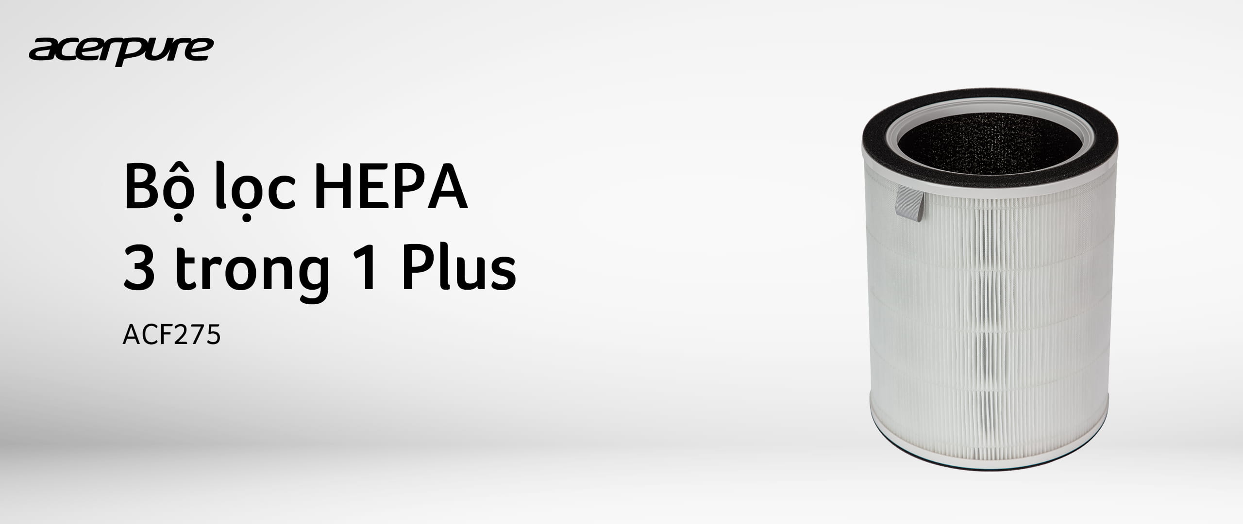 Với hệ thống lọc mạnh mẽ, bộ lọc HEPA 3 trong 1 Plus (ACF275) tiên tiến giúp loại bỏ 99,9% các hạt bụi siêu mịn trong không khí có kích thước nhỏ đến 0.3 micron (điển hình như PM1.0, PM2.5), khí độc hại và tác nhân gây dị ứng.